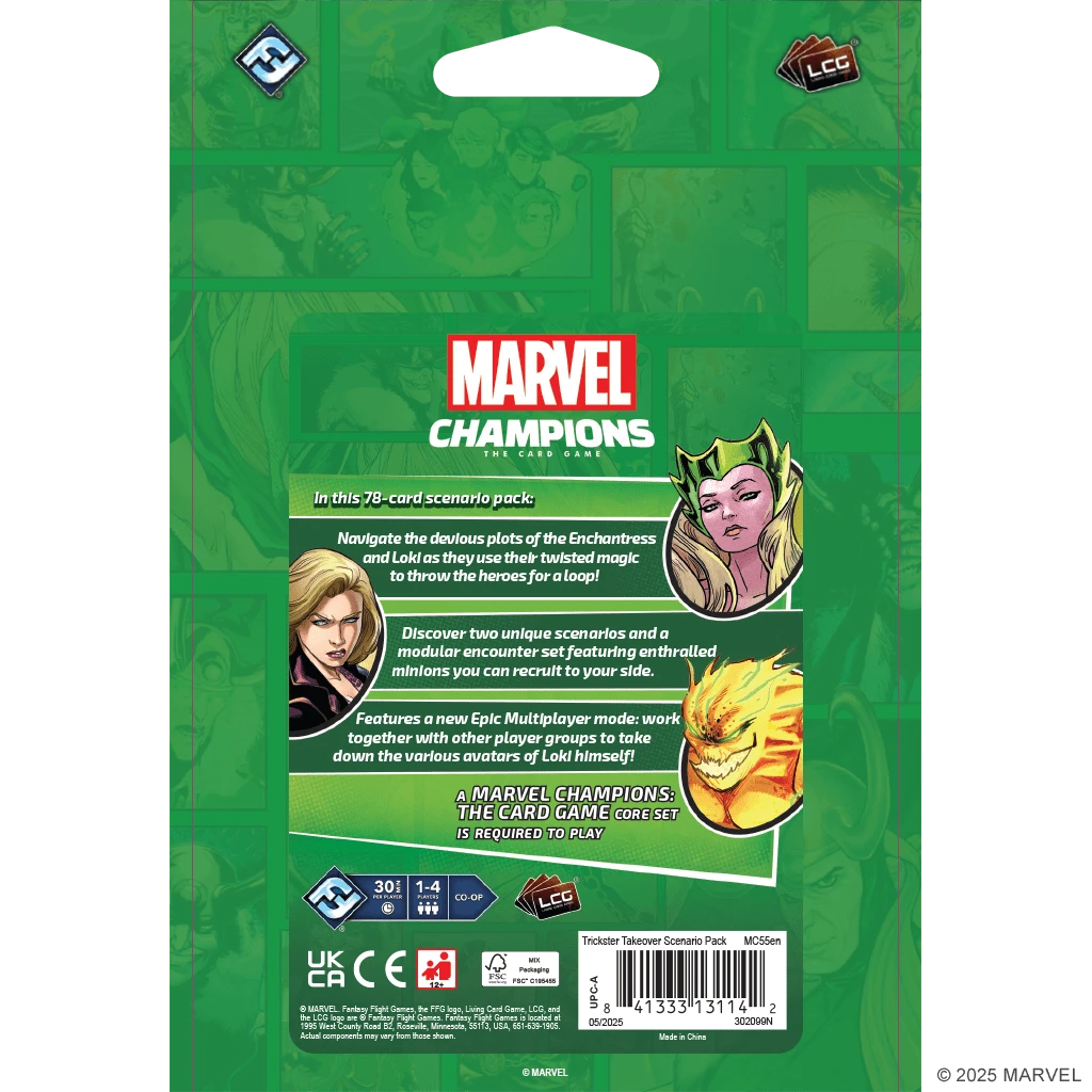 - A new Scenario Pack for Marvel Champions: The Card Game featuring Enchantress and Loki, two trickster villains with powerful magic at their command.