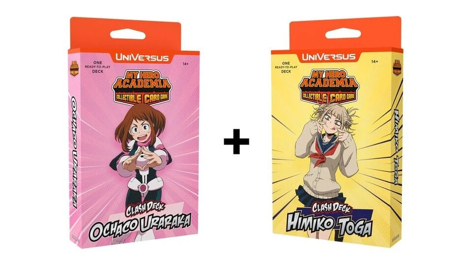 Excite new players with two brand new Clash Decks featuring Ochaco Uraraka and Himiko Toga! Each display contains eight ready to play Clash Decks for the MY HERO ACADEMIA COLLECTIBLE CARD GAME and serve as a great entry point for new players!
